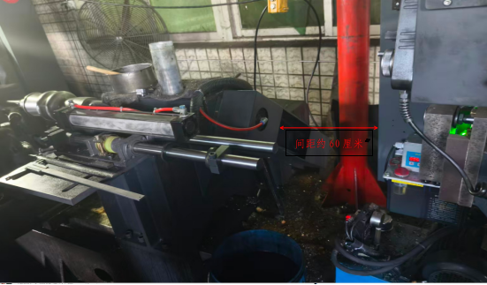 事故发生在甘蔗街道陈店湖工业区闽侯县胜祥工艺品有限公司的生产车间(官莊路12号佳隆工艺品有限公司内)。涉事设备为两台2025年6月新采购的数控旋压机,主要用于铁制品旋压工艺加工。两台设备均为敞开式,未安装安全防护门等防护装置。设备并排安装,实际测量间距约为60厘米(见图1),设备运行过程中液压顶杆会自动回程,回程时两台设备最小间距约为15-20厘米。设备未进行固定安装,存在因运行振动导致位置偏移的风险。